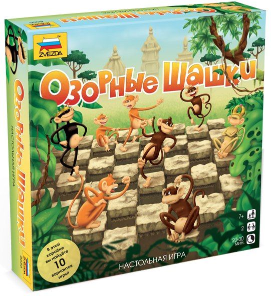 Наши озорные обезьянки любят не только лазить по деревьям и лопать бананы, но и не прочь потренироваться в смекалке. В чаще джунглей скрывается древний город, каменные руины которого уж сильно напоминают всем знакомое поле для шашек. Разбившись на команды и соблюдая все правила древней игры, хвостатые затейники выясняют между собой, кто проворней и умней.