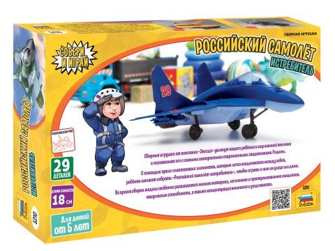 С помощью ярких пластиковых элементов, которые легко соединяются между собой, ребёнок сможет собрать «Российский самолёт-истребитель», чтобы играть с ним на улице или дома.