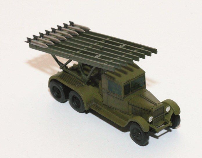 Модель легендарной установки “Катюша”. Выполнена на базе грузовика Зис-6. Легкость и простота сборки без клея, удачно сочетаются с высокой точностью исполнения модели. Прекрасно подойдет моделистам не желающим тратить много времени на сборку и покраску