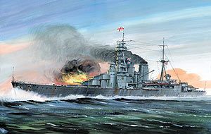 Был спущен на воду в 1918 году и вошел в состав британских ВМС в 1920 году. В 1939 году "Худ" был поврежден, когда участвовал в преследовании "Шарнхорста" и "Гнейзенау" в Северном море. В мае 1941 года на юге Гренландии при преследовании линкора "Бисмарк" "Худ" был обстрелен немецким кораблем и после попадения снаряда в оружейные погреба затонул.