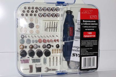 Продается в удобном для хранения и переноски кейсе с гибким валом и комплектом расходных материалов, насадок. Инструмент имеет плавную регулировку скорости 8000 - 30000 об/мин. и предназначен для обработки небольших поверхностей с помощью сменных насадок.