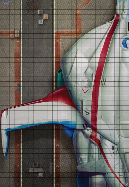 С одной стороны покрытия вы найдёте изображение находящегося в ангаре звездолёта "Рассветная дева". С другой же – его масштабный план.