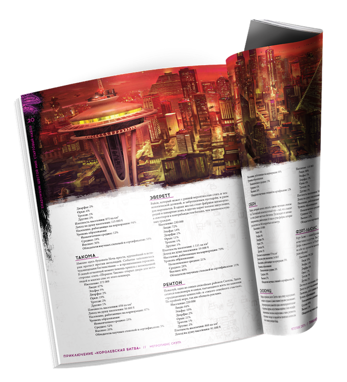Внутри вы найдёте готовое приключение, которое поможет игрокам проникнуться духом вселенной и узнать больше о самых знаменитых бандах Сиэтла. "Shadowrun: Шестой мир. Стартовый набор" содержит множество памяток и предлагает удобную и структурированную информацию, которой легко пользоваться в процессе игры.