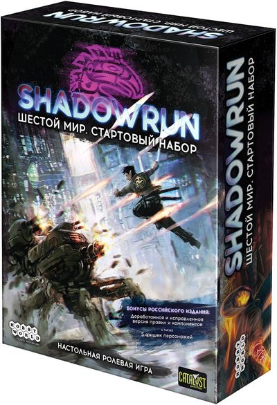 Перед вами мрачный мир будущего, где технологии и гнетущая атмосфера перемешаны с фэнтезийными расами, магией и даже эзотерикой. Настольная ролевая система получила новый приток игроков и популярности благодаря серии видеоигр по мотивам предыдущих редакций игры. Вы же окажетесь в шестой редакции правил Shadowrun и будете участвовать в тактических сражениях, творить магию и, конечно же, взламывать компьютерные сети.